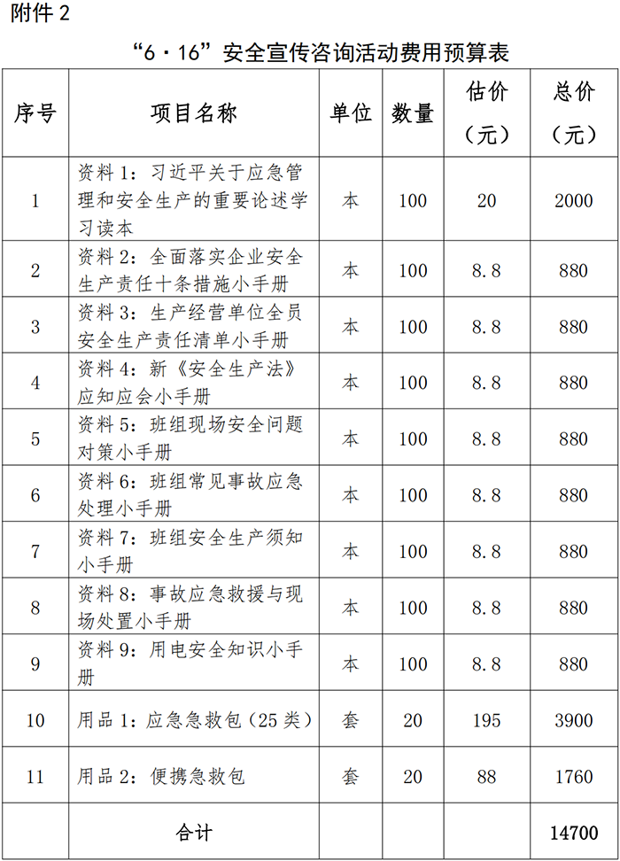 附件2:“6·16”安全宣傳咨詢活動費(fèi)用預(yù)算表