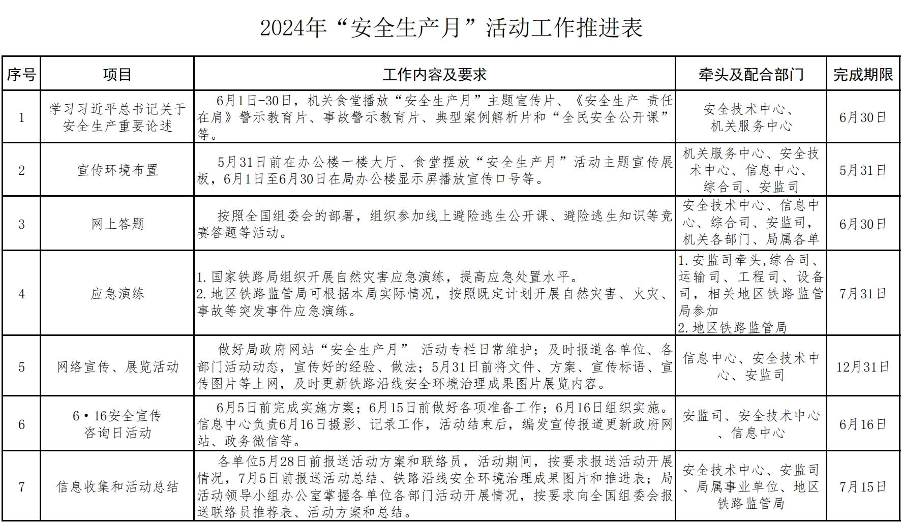 國家鐵路局2024年“安全生產月”活動實施方案