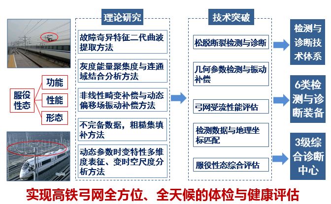 圍繞高鐵弓網安全運行,在科技部、國家自然科學基金委、中國鐵路總公司等重大課題支持下,課題組歷時7年,在高鐵弓網安全運行檢測與診斷技術體系、服役性態檢測監測、海量數據挖掘與診斷、系統集成與成套裝備研制等方面取得了如下重大創新成果: