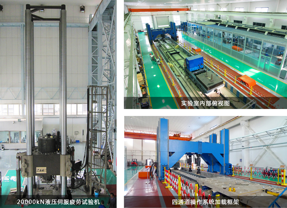 ——橋梁結構工程實驗部擁有20000 kN液壓伺服疲勞試驗機、8800 kN液壓伺服試驗機系統、2000 kN液壓伺服疲勞試驗機、500kN電液伺服材料試驗機、500kN脈沖疲勞試驗機系統等。