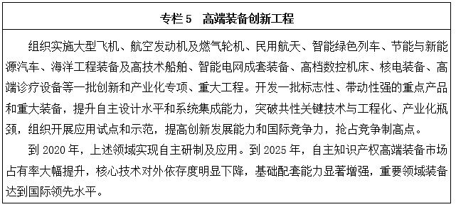 整體推進(jìn),重點(diǎn)突破。堅(jiān)持制造業(yè)發(fā)展全國(guó)一盤(pán)棋和分類(lèi)指導(dǎo)相結(jié)合,統(tǒng)籌規(guī)劃,合理布局,明確創(chuàng)新發(fā)展方向,促進(jìn)軍民融合深度發(fā)展,加快推動(dòng)制造業(yè)整體水平提升。圍繞經(jīng)濟(jì)社會(huì)發(fā)展和國(guó)家安全重大需求,整合資源,突出重點(diǎn),實(shí)施若干重大工程,實(shí)現(xiàn)率先突破。