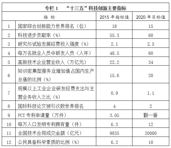 “十三五”國家科技創新規劃