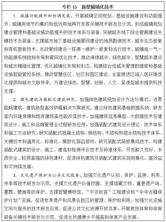 圍繞新型城鎮化領域的瓶頸制約,針對綠色、智慧、創新、人文、緊湊型城市建設,以系統工程理念為出發點,尊重城市發展規律,創新和改進規劃方法,把生態環境承載力、歷史文脈傳承、綠色低碳等理念融入規劃設計全過程,通過科技創新統籌引領城市規劃、建設、管理等各個環節,研發系統性技術解決方案。加強城鎮區域發展動態監測、城鎮布局和形態功能優化、城鎮基礎設施功能提升、城鎮用地節約集約和低效用地再開發、城市地下綜合管廊、地下空間合理布局與節約利用、城市信息化與智慧城市等關鍵技術研發,加強綠色生態基礎設施和海綿城市建設技術研發,著力恢復城市自然生態;加強建筑節能、室內外環境質量改善、綠色建筑及裝配式建筑等的規劃設計、建造、運維一體化技術和標準體系研究,發展近零能耗和既有建筑改造技術體系,推進和提升節地、節能、節水、節材和環保技術在城市建設中的應用推廣;加強文化遺產保護傳承和公共文化、體育健身等公共服務關鍵技術研究,培育教育、文化、體育、旅游等城市創新發展新業態,推動歷史文脈延續和人文城市建設。力爭到2020年形成較為完備的新型城鎮化建設和發展理論體系、共性關鍵技術和標準規范體系,推動城鎮可持續人居環境建設和公共服務功能提升,有力保障中國特色新型城鎮化建設。