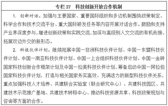 三是圍繞拓展創新發展空間,統籌國內國際兩個大局。支持北京、上海建設具有全球影響力的科技創新中心,建設一批具有重大帶動作用的創新型省市和區域創新中心,推動國家自主創新示范區和高新區創新發展,系統推進全面創新改革試驗;完善區域協同創新機制,加大科技扶貧力度,激發基層創新活力;打造“一帶一路”協同創新共同體,提高全球配置創新資源的能力,深度參與全球創新治理,促進創新資源雙向開放和流動。