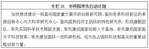 加快科研院所分類改革,建立健全現代科研院所制度。按照事業單位分類改革方案,繼續深化公益類科研院所改革,建設完善法人治理結構,推動科研機構實行章程管理,健全規章制度體系,逐步推進科研去行政化,增強在基礎前沿和行業共性關鍵技術研發中的骨干引領作用。建立科研機構創新績效評價制度,研究完善科研機構績效撥款機制。堅持開發類科研院所企業化轉制方向,按照承擔行業共性科研任務、生產經營活動等不同情況,實行分類改革、分類管理、分類考核。落實和擴大科研院所法人自主權。實施中科院率先行動計劃,發揮其集科研院所、學部、教育機構于一體的優勢,探索中國特色國家現代科研院所制度。