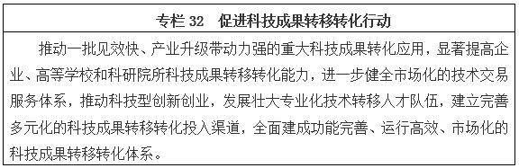 實施促進科技成果轉移轉化行動,進一步破除制約科技成果轉移轉化的體制機制障礙,完善相關配套措施,強化技術轉移機制建設,加強科技成果權益管理改革,激發科研人員創新創業活力。
