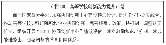 統籌推進世界一流大學和一流學科建設,系統提升人才培養、學科建設、科技研發、社會服務協同創新能力,增強原始創新能力和服務經濟社會發展能力,擴大國際影響力。強化行業特色高等學校主干學科和辦學特色。加強區域內高等學校科研合作、學術交流和資源開放共享,面向市場需求開展應用技術研發。加快中國特色現代大學制度建設,落實和擴大高等學校法人自主權,統籌推進教育創新、科技創新、體制創新、開放創新和文化創新,激發高等學校辦學動力和活力。深化高等學校科研體制機制改革,推進科教緊密融合,開展高等學校科研組織方式改革試點。以產教融合、科教協同為原則推進研究生培養改革,鼓勵開展案例式、互動式、啟發式教學,培養富有創新精神和實踐能力的各類創新型、應用型、復合型優秀人才。改革完善高等學校創新能力提升計劃組織實施方式,加強協同創新中心建設。