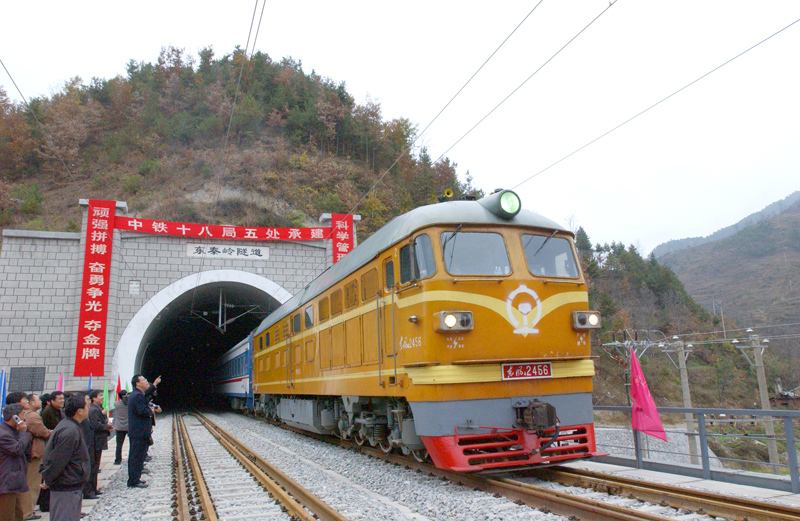 西安至南京鐵路東秦嶺隧道,隧道全長12.268km。是我國當時第三長雙線電氣化鐵路隧道。
