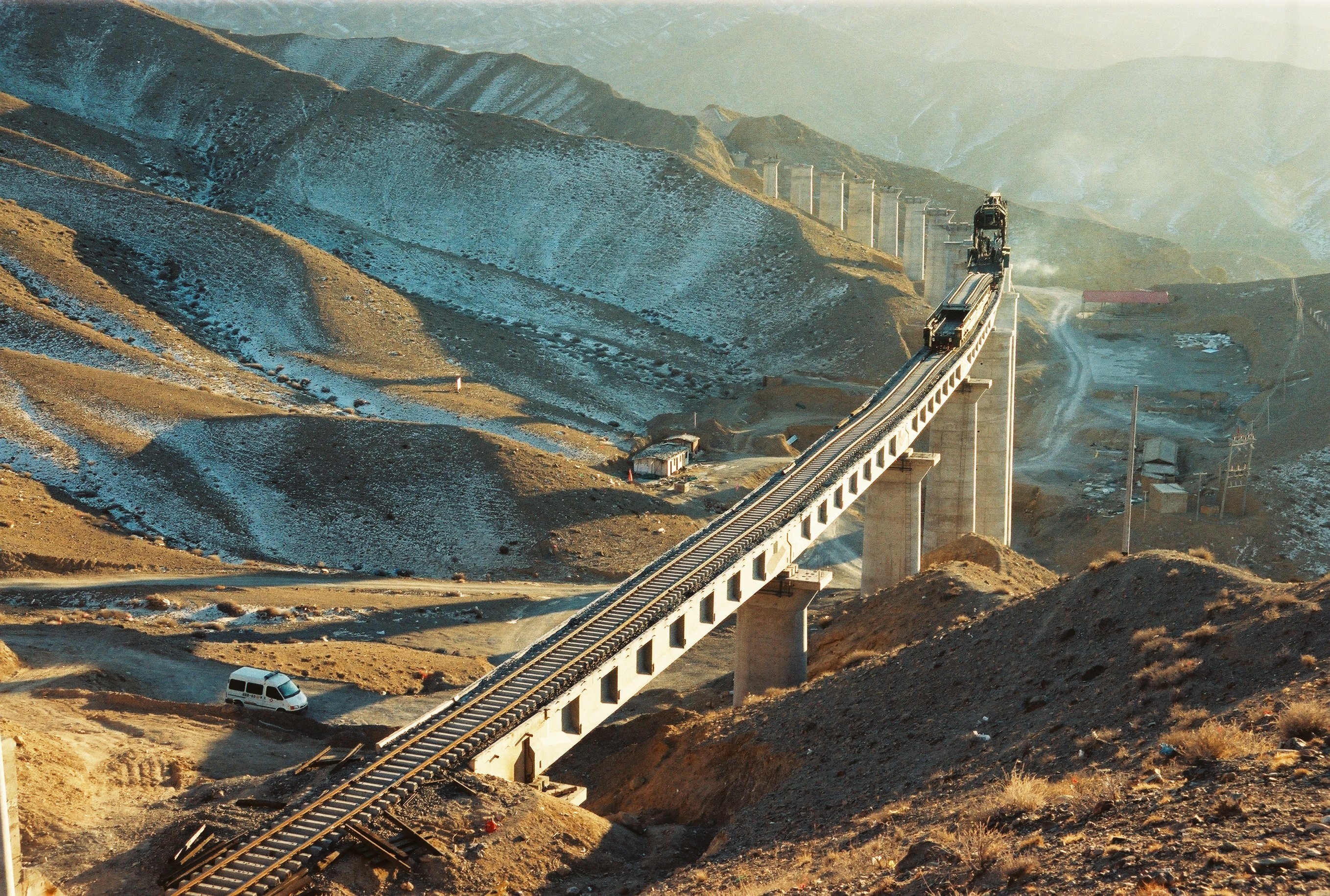 圖4 鋪軌中的新龍口特大橋 圖5 蘇布臺特大橋