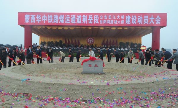 蒙華鐵路重點(diǎn)控制工程公安長江特大橋和洞庭湖特大橋于2013年6月批準(zhǔn)先期開工建設(shè)。2015年6月,蒙華鐵路七座重點(diǎn)控制隧道工程正式開工,10月實(shí)現(xiàn)項(xiàng)目全線開工。2015年全年完成投資168億元,現(xiàn)場施工各項(xiàng)工作有序推進(jìn),工程進(jìn)展順利,質(zhì)量安全有序可控。2015年12月3日,公安長江特大橋主跨順利合龍,實(shí)現(xiàn)了首個(gè)重點(diǎn)工程節(jié)點(diǎn)目標(biāo)。