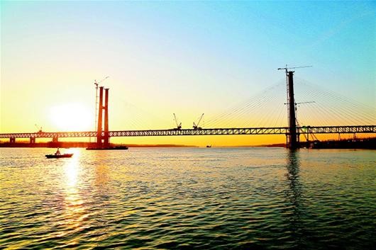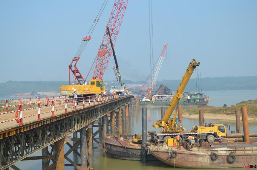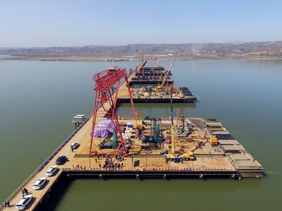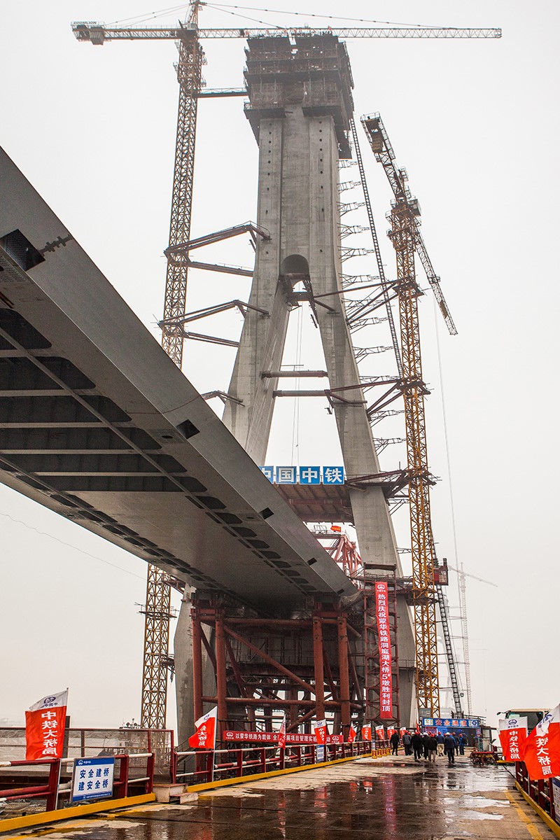 圖11 三門峽黃河公鐵兩用大橋主橋施工現(xiàn)場 圖12 洞庭湖特大橋首座主塔墩封頂