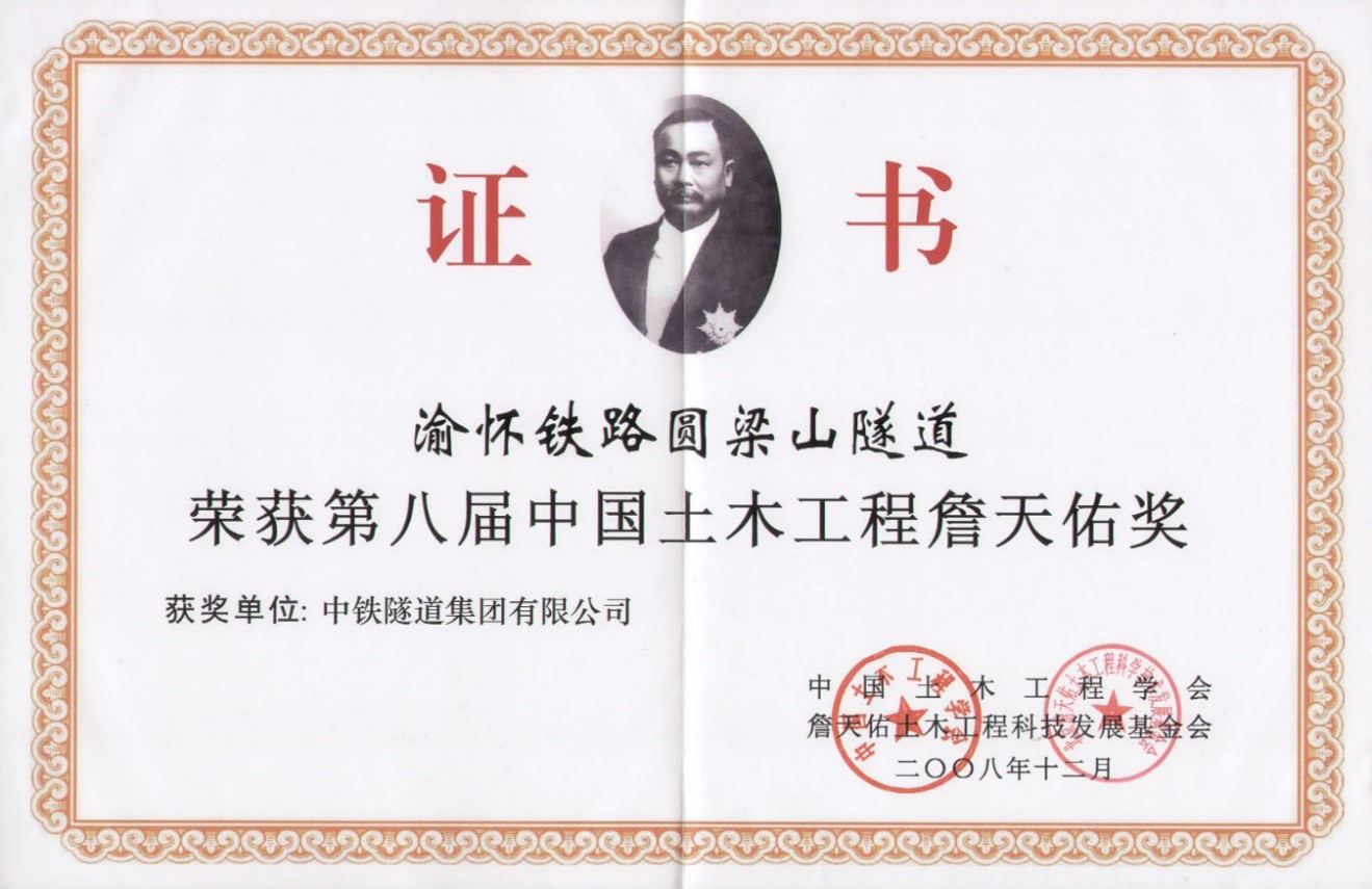 | 渝懷鐵路圓梁山隧道 | 2008年 | 中鐵隧道集團有限公司、渝懷鐵路建設總指揮部、中鐵二院工程集團有限責任公司、中鐵隧道股份有限公司、中鐵隧道集團二處有限公司、中鐵隧道勘測設計院有限公司 |