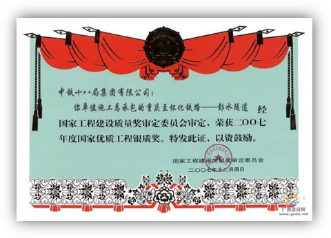 | 渝懷鐵路彭水隧道 | 一等獎 | 中鐵十八局集團有限公司 |
