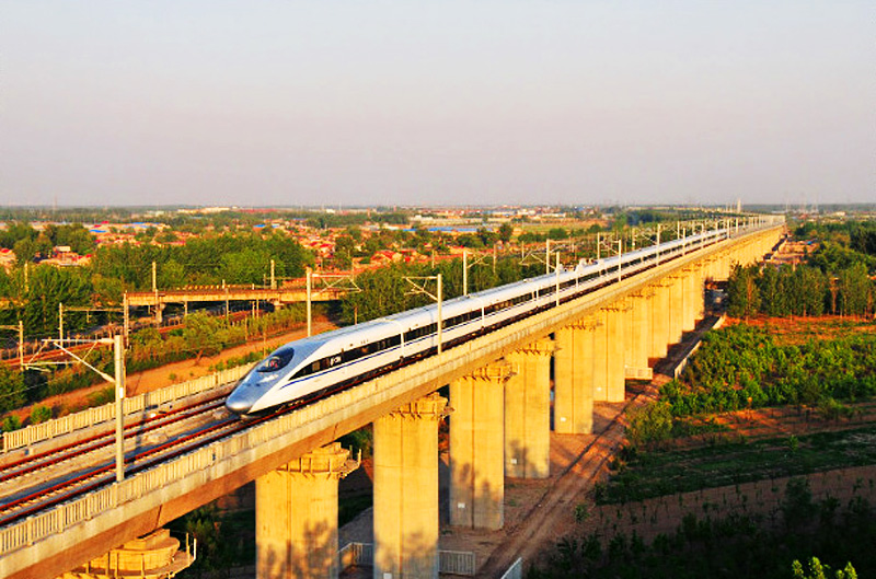 2011年6月30日,世界上一次建成里程最長的京滬高速鐵路開通運營。京滬高速鐵路全長1318公里,連接京滬兩地,貫通我國東部最發達地區,設計時速350公里,初期運營時速300公里。2010年12月3日,新一代“和諧號”動車組CRH380AL在京滬高速鐵路棗莊至蚌埠間的試驗段創造了時速486.1公里運營列車試驗速度新紀錄。 |