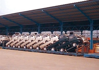 鐵路商品汽車運輸是鐵路特種貨物運輸的重要組成部分。目前,鐵路專門用于運輸商品汽車的專用車輛有J5SQ、J6SQ、JSQ1,JSQ3、JSQ4、JSQ5、JSQ6型車以及板架式汽車箱,運輸裝備共計6000余輛(箱)。其主力車型JSQ5、JSQ6型車具有裝載能力大、適運車型廣、裝卸簡便等特點。