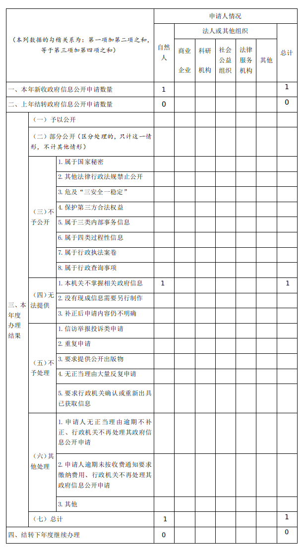 三、收到和處理政府信息公開申請的情況