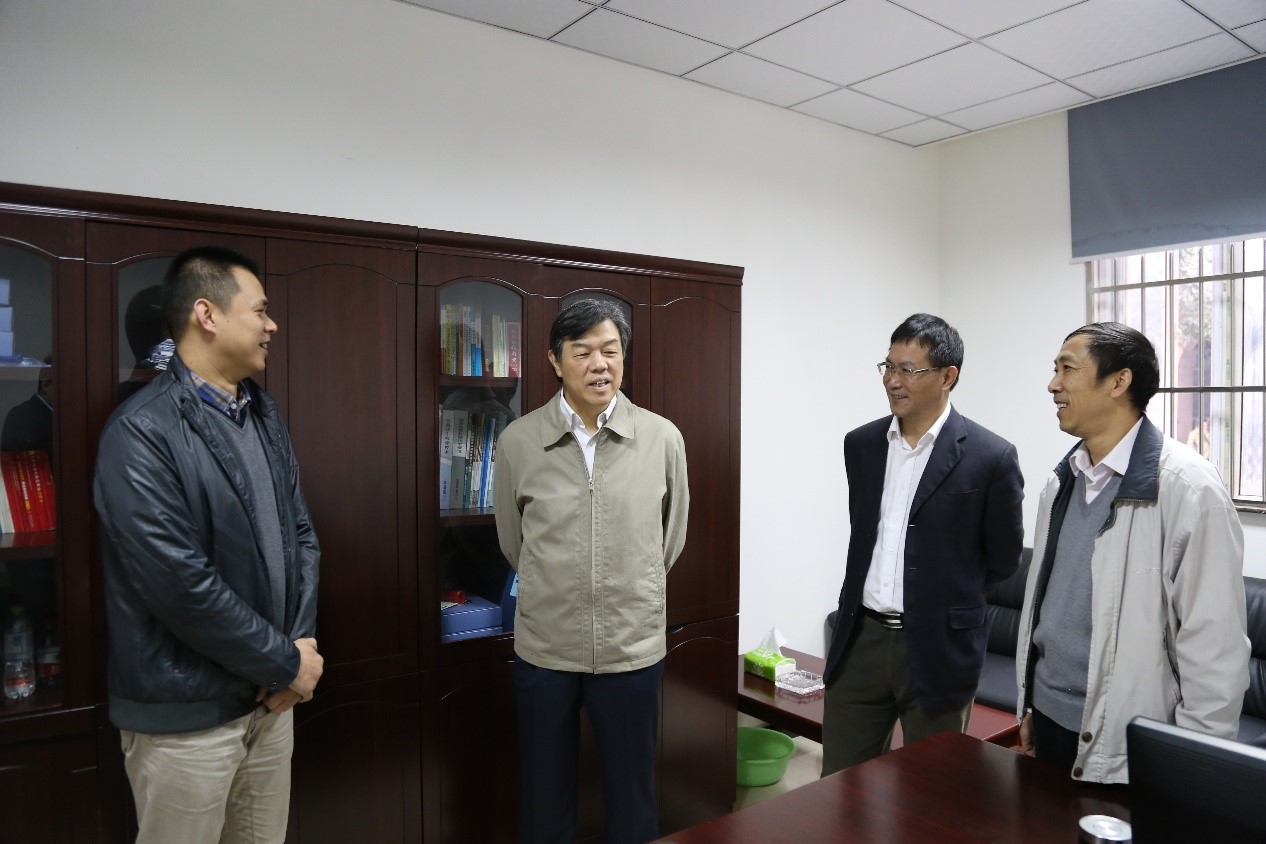 圖為國家鐵路局黨組書記、局長陸東福(左二)一行在成都鐵路監(jiān)管局了解行政執(zhí)法工作情況。