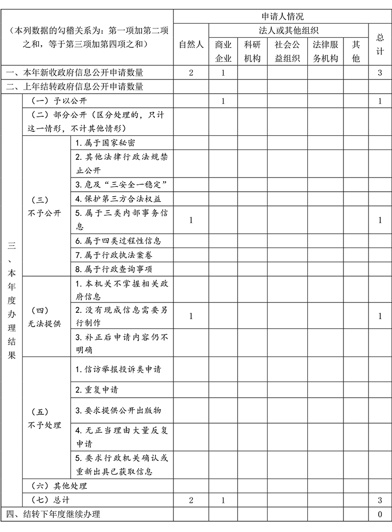 三、收到和處理政府信息公開申請情況