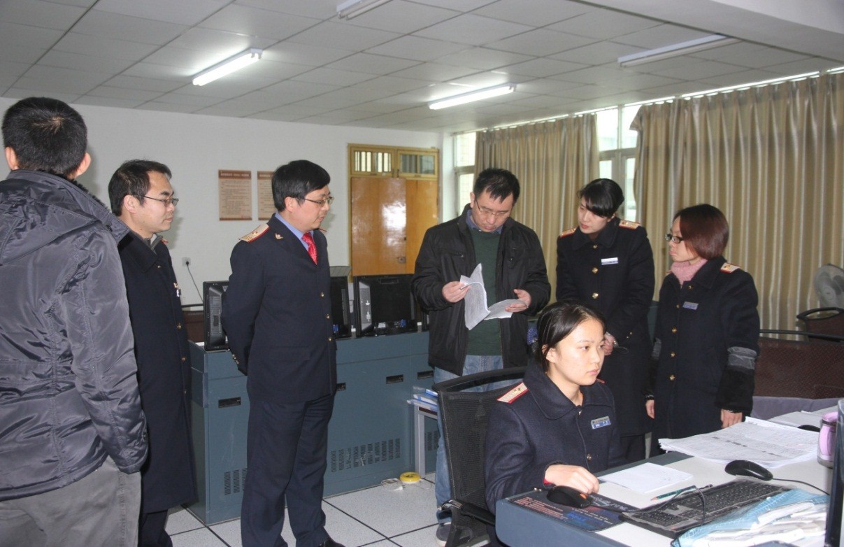 圖為檢查組在桂林西站綜控室檢查運輸秩序情況。