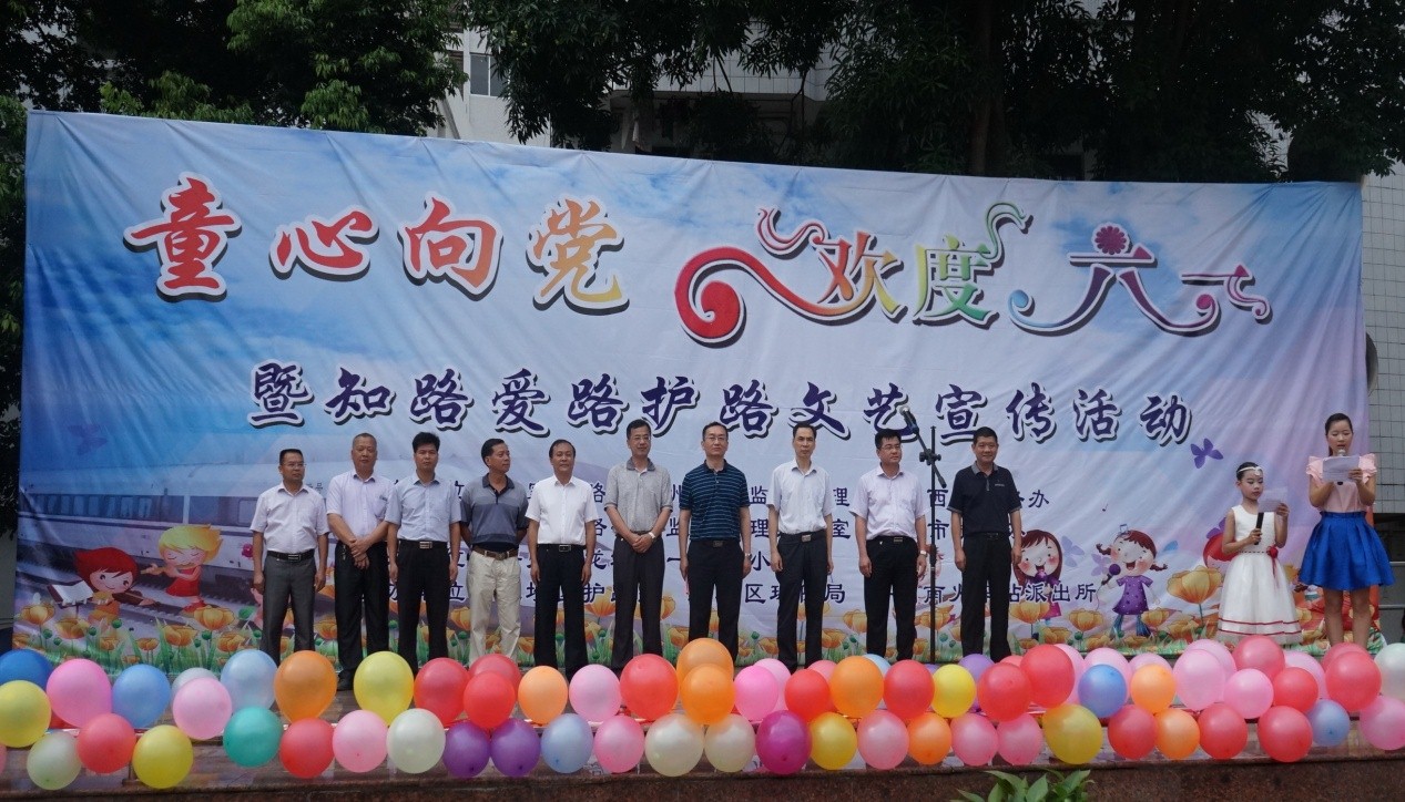 5月30日,由廣州鐵路監管局組織的“‘童心向黨 歡度六一’暨知路愛路護路宣傳活動”在廣西壯族自治區梧州市龍圩第一實驗小學隆重舉行,拉開了廣州鐵路監管局“安全生產月”系列宣傳活動的帷幕。