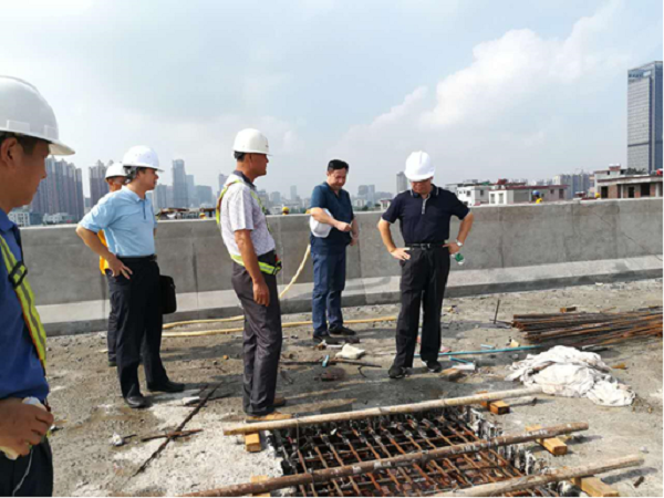 圖為檢查組現(xiàn)場檢查廣梅汕鐵路龍湖南至汕頭增建二線框架橋施工安全質(zhì)量。