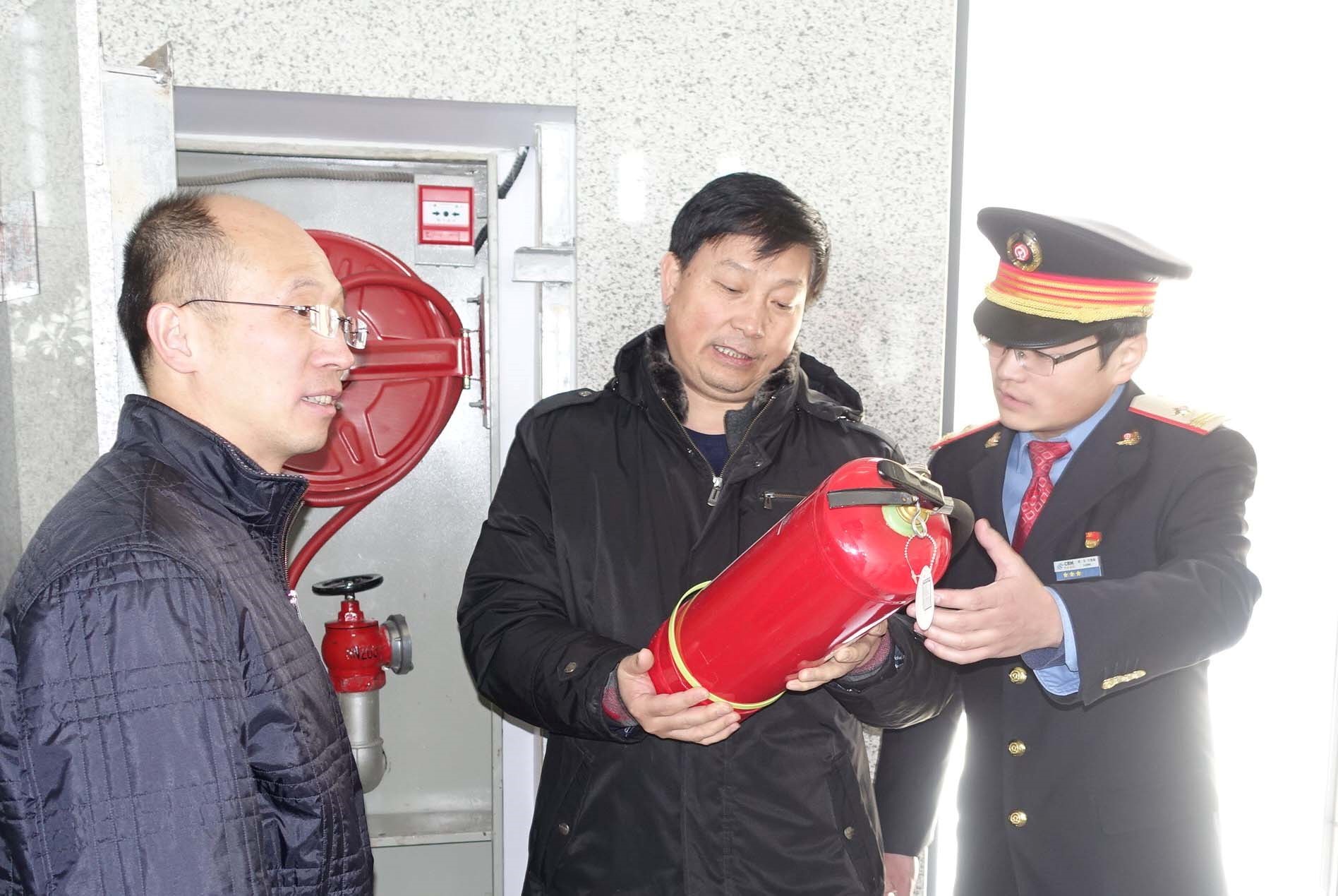 圖為檢查組在嘉峪關南站檢查消防設施設備配備情況。