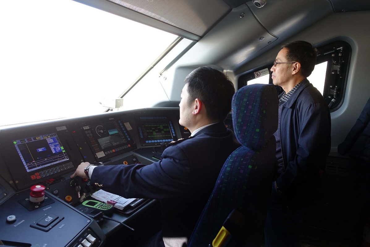 圖為檢查組添乘高鐵列車檢查蘭新客專沿線安全環境情況。