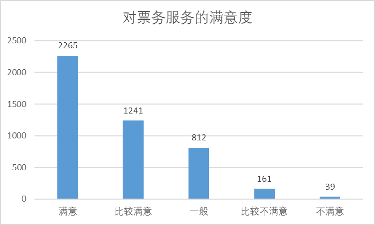 3.問(wèn)卷調(diào)查情況分析。本季度問(wèn)卷調(diào)查中,對(duì)于票務(wù)服務(wù),50.13%旅客選擇“滿意”,27.47%旅客選擇“比較滿意”,旅客較為不滿、認(rèn)為需要改善的主要集中在改簽、取票和退票方面。詳見(jiàn)圖3。