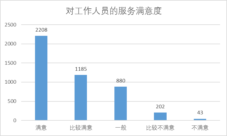 對(duì)于工作人員服務(wù),48.87%旅客選擇“滿意”,26.23%旅客選擇“比較滿意”, 旅客較為不滿、認(rèn)為需要改善的主要集中在廁所衛(wèi)生和飲水供應(yīng)等方面。詳見(jiàn)圖4。