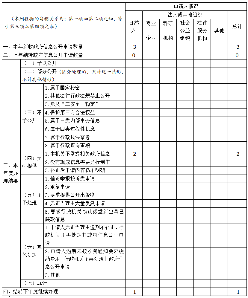 三、收到和處理政府信息公開申請情況
