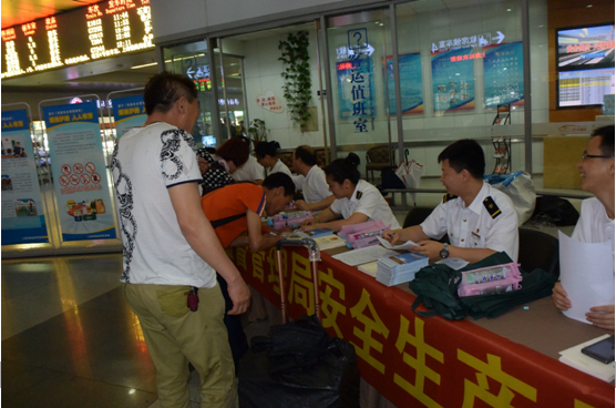 6月16日,上海鐵路監管局與上海火車站聯合組織開展鐵路安全生產月咨詢日活動。活動期間,在上海站候車區擺放安全宣傳展板,宣傳《安全生產法》、《鐵路安全管理條例》等鐵路法律法規及安全知識,向旅客發放各類安全宣傳資料,現場解答群眾詢問,并邀請旅客填寫安全出行知識問卷,增強了廣大旅客自覺遵守鐵路安全法律法規,共同維護鐵路安全的意識。
