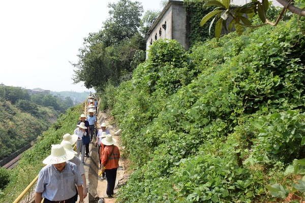 圖為檢查組現場查看沿線環境隱患整治情況。