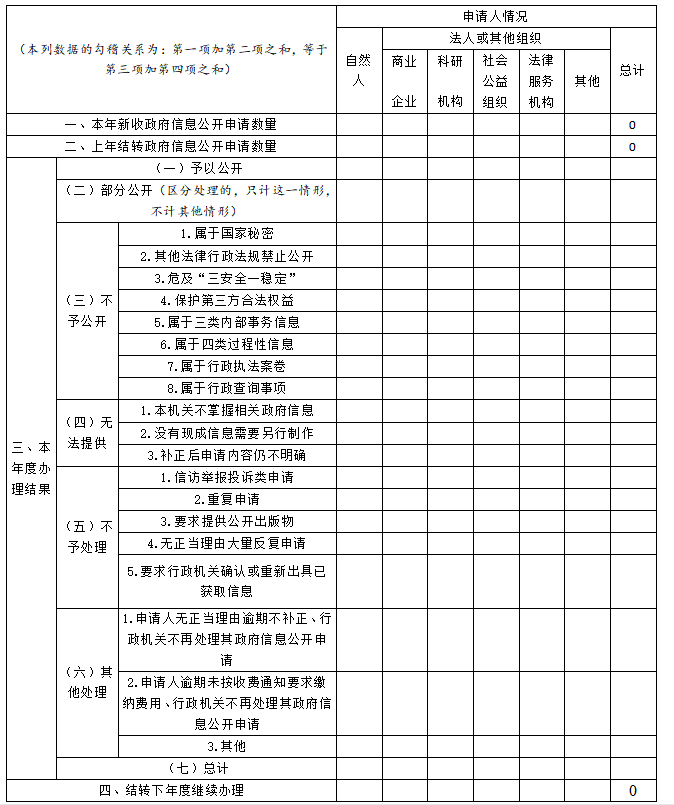 三、收到和處理政府信息公開申請情況