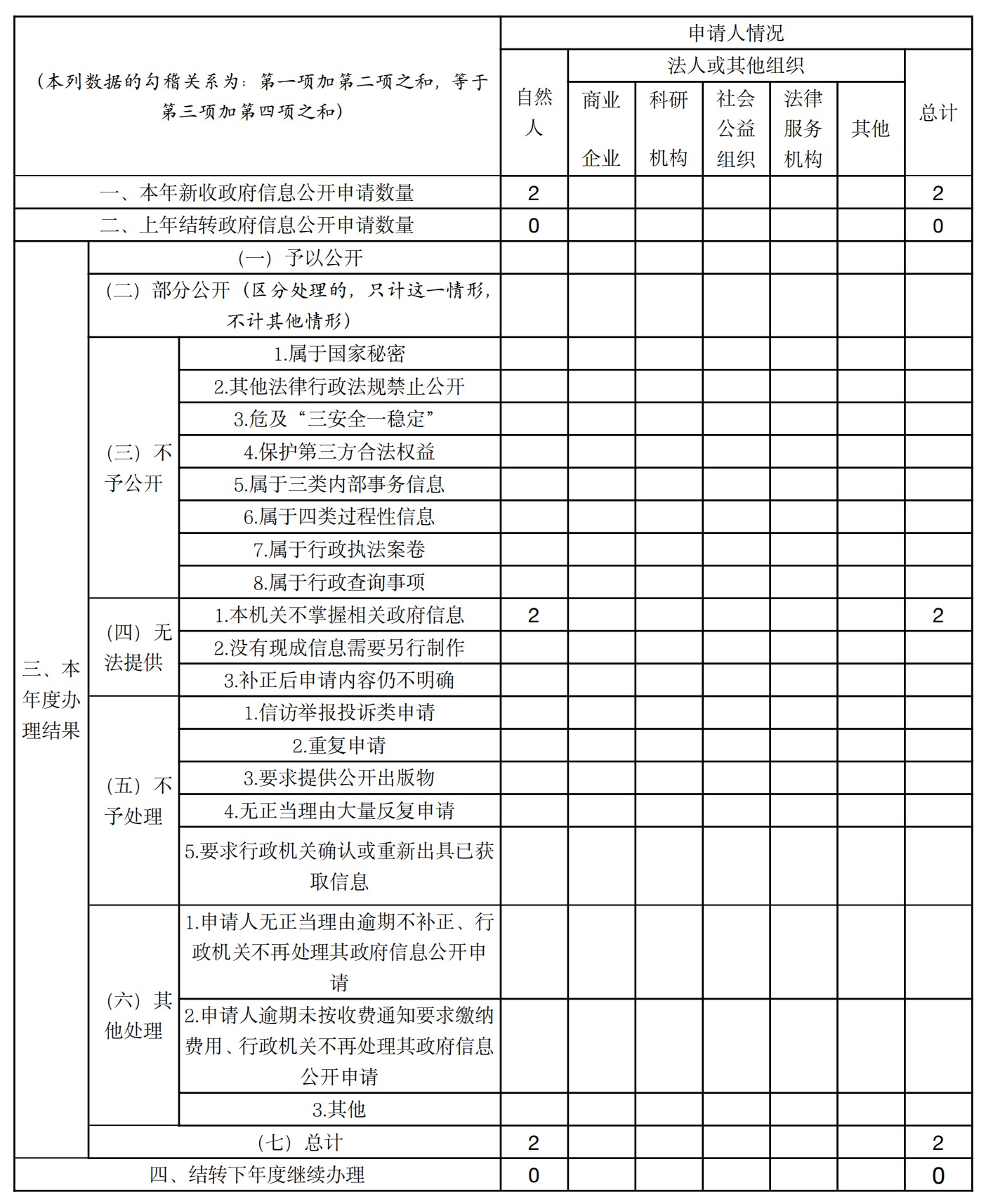 三、收到和處理政府信息公開申請情況