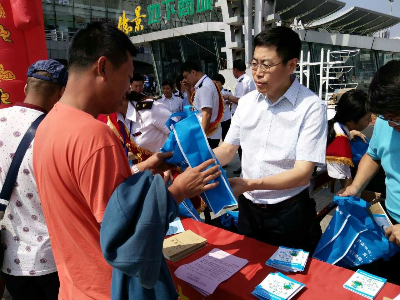 6月16日,沈陽鐵路監管局由局領導帶隊,聯合沈陽、哈爾濱鐵路局及鐵路公安部門,分別在沈陽北站、長春站、哈爾濱西站、齊齊哈爾站組織開展鐵路安全生產宣傳咨詢日活動。活動期間,通過設立安全咨詢服務站、擺放安全生產宣傳展板、播放宣傳教育警示片、發放鐵路安全宣傳品及資料和現場解答旅客問詢等方式,廣泛宣傳《安全生產法》、《鐵路安全管理條例》等安全法律法規和鐵路安全常識,引導旅客進一步增強安全發展理念,共同維護鐵路安全。圖為沈陽鐵路監管局領導帶隊向旅客發放安全生產宣傳資料。