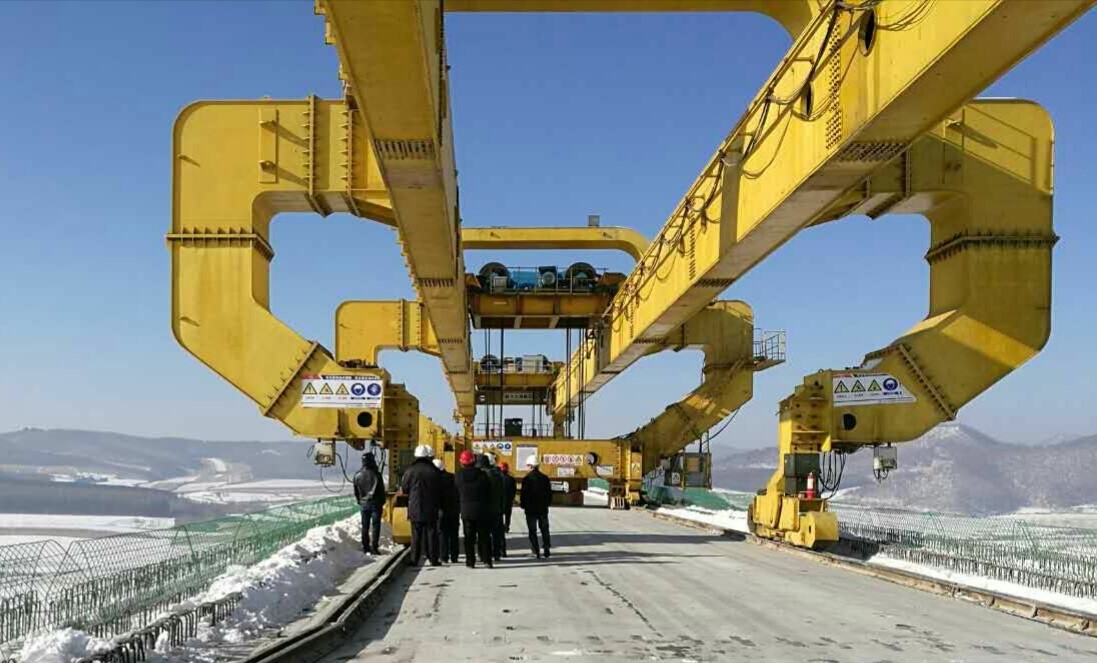 近期,沈陽鐵路監管局對轄區哈牡客運專線冬季施工質量安全進行專項監督檢查。圖為檢查組檢查哈牡客專海林特大橋架梁施工作業情況。