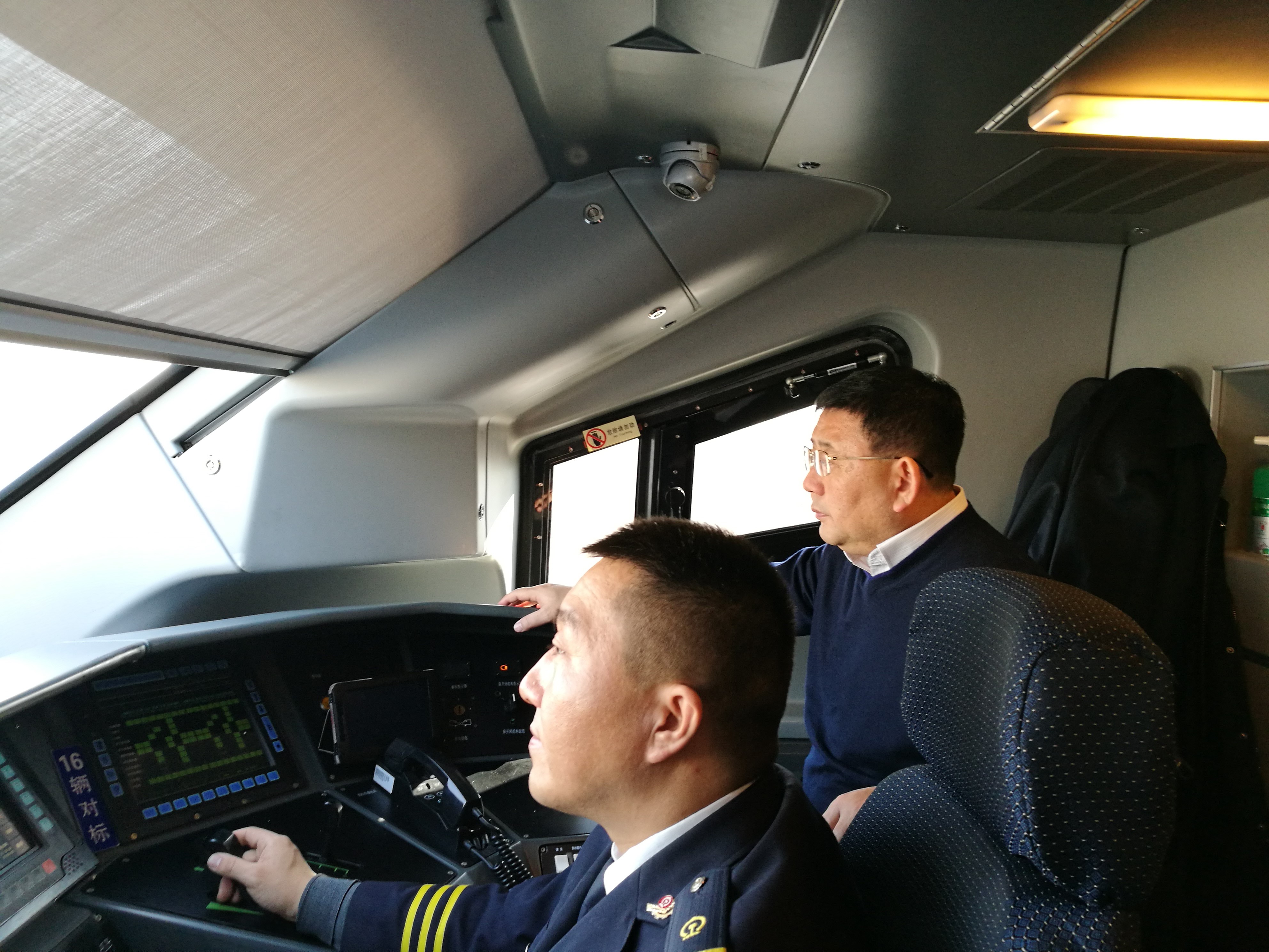 進入春運以來,沈陽鐵路監管局結合轄區鐵路設施設備質量和現場作業等面臨的低溫嚴寒天氣特點,有針對性地確定監督檢查重點,由局領導帶隊成立3個檢查組,深入轄區開展春運監督檢查,督促相關單位加強問題整改和隱患排查整治,確保春運安全平穩有序。圖為監管局領導帶隊添乘檢查哈大高鐵。