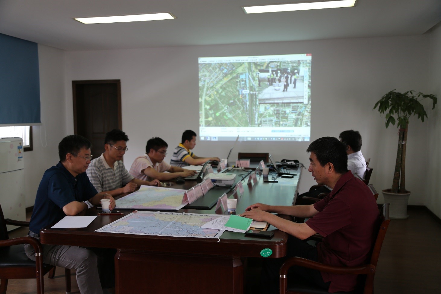 圖為演練人員運(yùn)用智能可視化遠(yuǎn)程指揮系統(tǒng)進(jìn)行模擬指揮。
