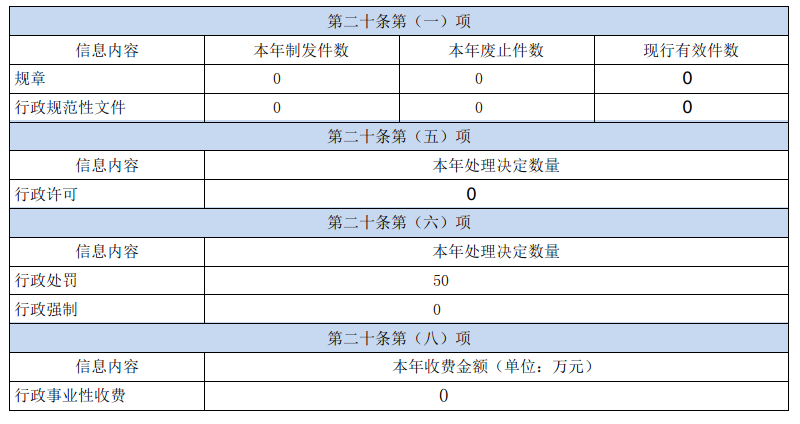 按照《國務院辦公廳關于印發〈政府信息公開信息處理費管理辦法〉的通知》(國辦函〔2020〕109號)規定的按件、按量收費標準,本年度未產生信息公開處理費。