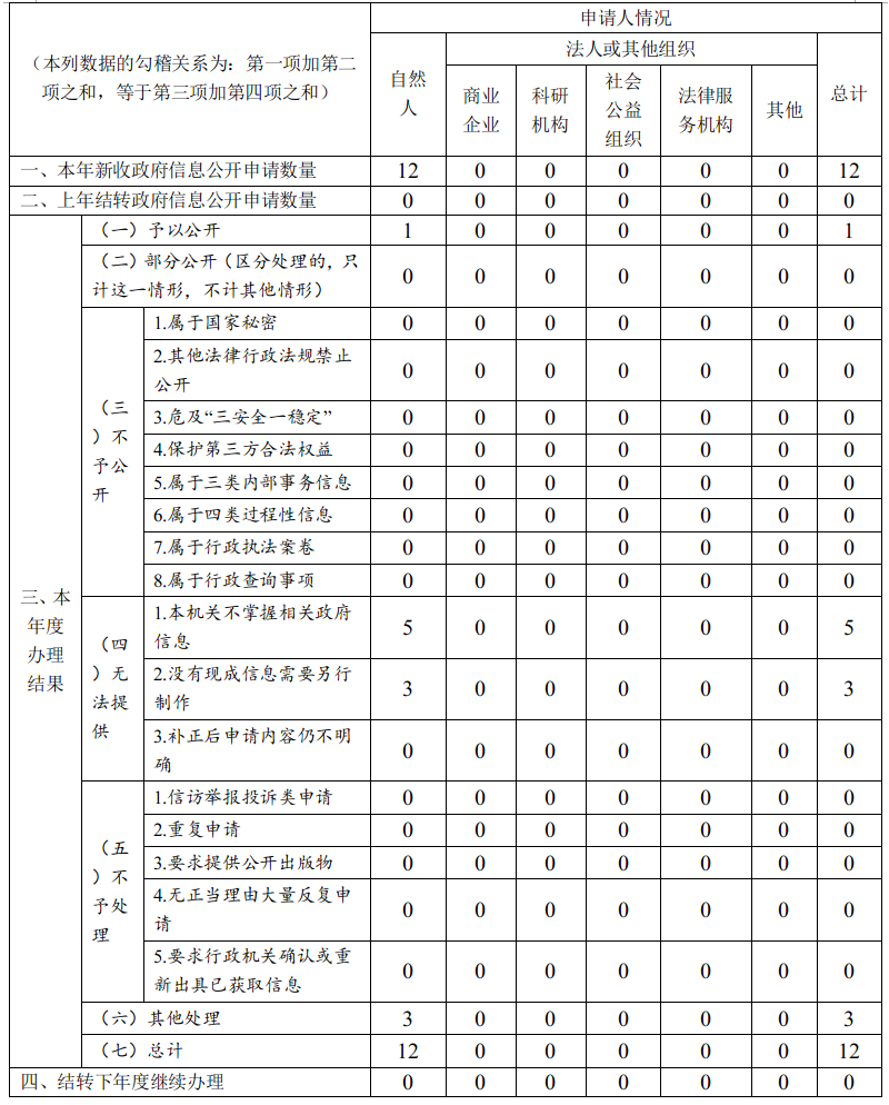 2.依申請公開方面。嚴格執行依申請公開政府信息辦理流程,強化信息審核,保障申請人的合法權益。2023年,我局受理政府信息公開申請12項,按時辦結率100%。