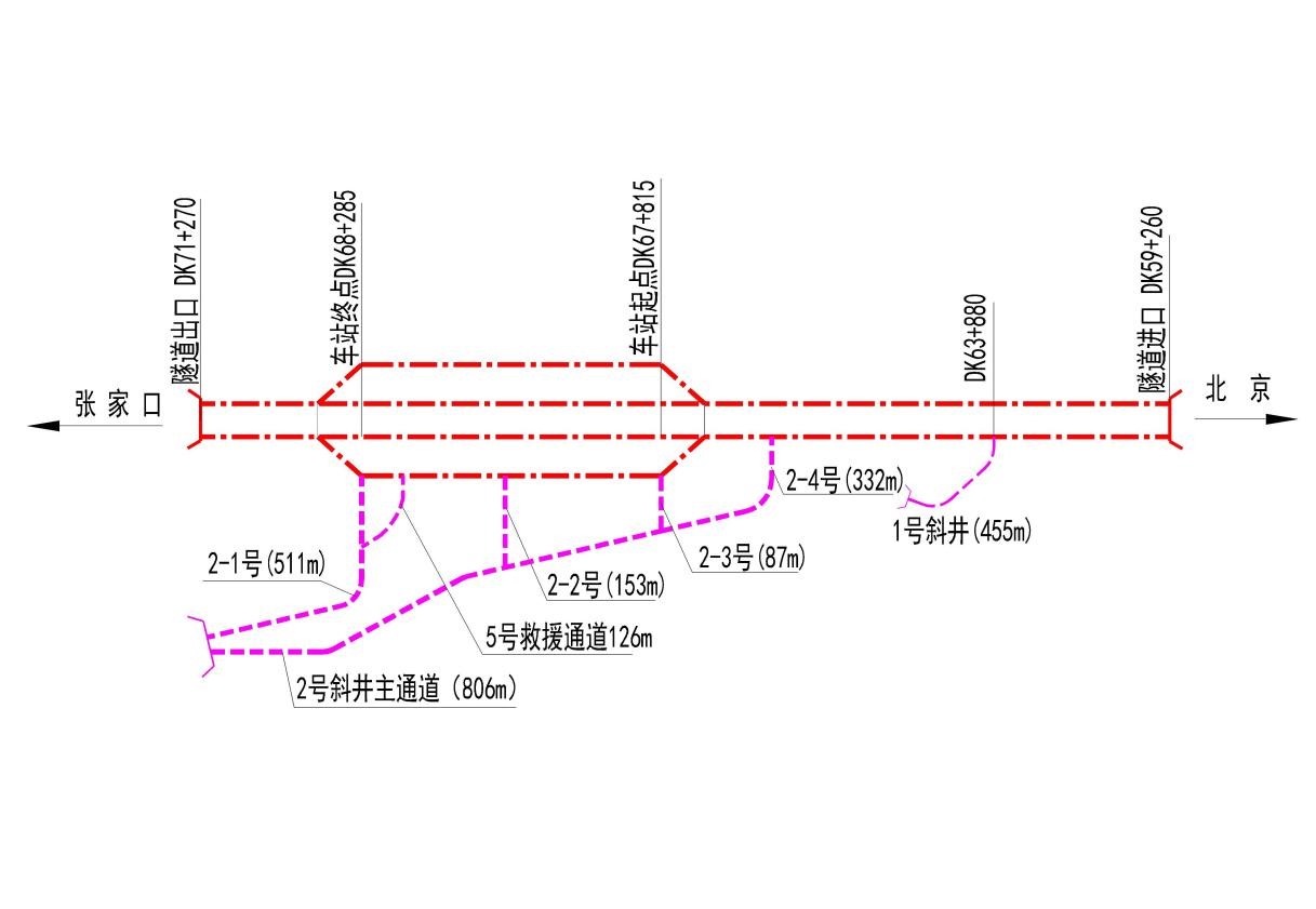京張鐵路新八達(dá)嶺隧道全長(zhǎng)12.01km,是全線最長(zhǎng)隧道。隧道位于北京市昌平區(qū)南口鎮(zhèn)至延慶縣區(qū)段,一次并行水關(guān)長(zhǎng)城,兩次下穿八達(dá)嶺長(zhǎng)城,一處淺埋下穿老京張鐵路青龍橋車(chē)站。隧道洞身最小埋深4m,最大埋深432m;所在區(qū)段最高設(shè)計(jì)時(shí)速為250km/h,是單洞雙線隧道;隧道設(shè)計(jì)有兩個(gè)斜井進(jìn)行輔助施工,均為永久性救援通道。2016年4月開(kāi)工建設(shè),計(jì)劃2019年12月建成通車(chē)。