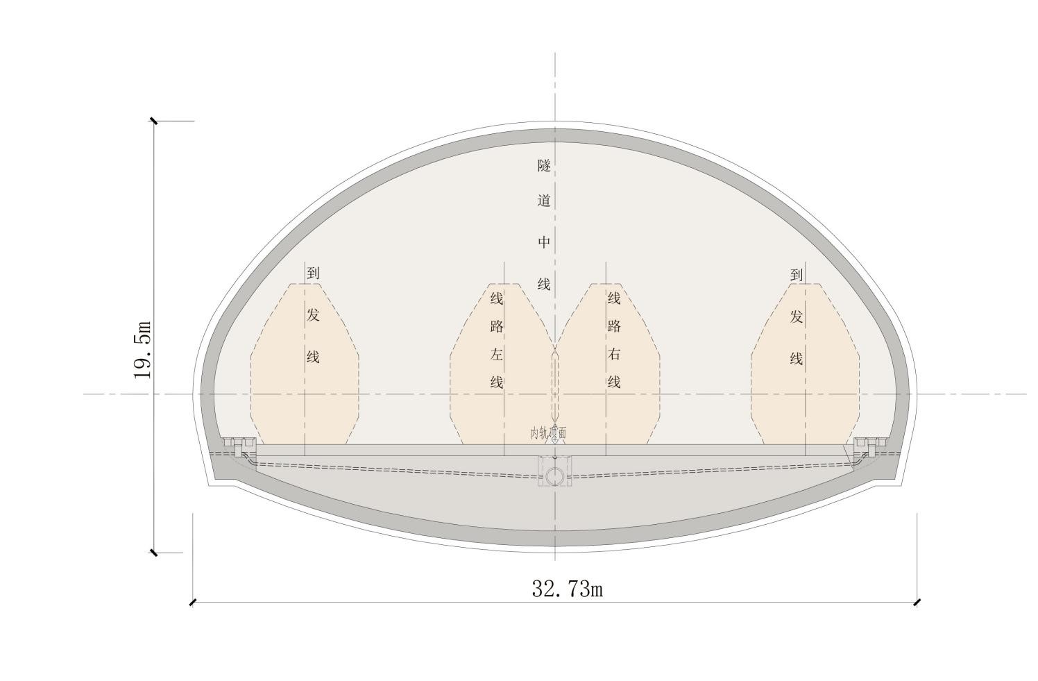 3.車(chē)站兩端渡線段單洞開(kāi)挖跨度達(dá)32.7m,是目前國(guó)內(nèi)單拱跨度最大的暗挖鐵路隧道,施工技術(shù)難度大,施工組織復(fù)雜。