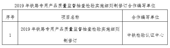 國家鐵路局裝備技術中心2019年鐵路專用產品質量監督抽查檢驗實施細則制修訂合作編寫單位選擇方案公示